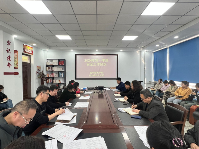 2024年3月20日下午,医学技术学院在部系楼C区501会议室,召开了学院2024年第一季度安全工作会议,学习传达上级部门关于学校安全工作精神,分析研判当前学院安全稳定工作形势,对做好下一步安全工作进行部署并签订本年度的安全责任状。会议由党委书记孙贺主持,学院领导班子成员、各科室主任、行政人员及全体辅导员参加了会议。
