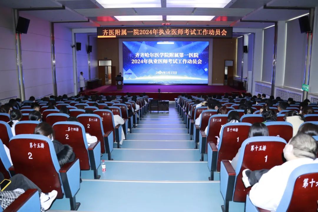 3月15日,齐医附属一院在多功能厅召开2024年执业医师考试工作动员会。副院长刘忠锦作重要讲话,教学部门职能科长参会,255名本科生、56名住培学员(含48名专硕学员)现场收听讲座,2018级临床医学专业毕业生及教师200余人线上参会。学生科副科长马鑫主持会议。