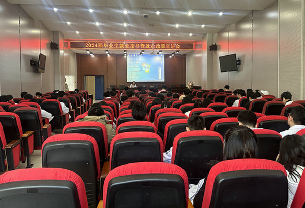 3月15日下午,齐医附属二院学生科在培训基地一楼多功能厅召开2024届毕业生就业指导暨就业政策宣讲会,学生科副科长才艳雪主持会议并作动员讲话,辅导员及2024届在校毕业生100余名参会。