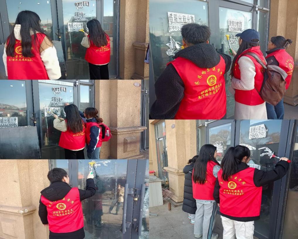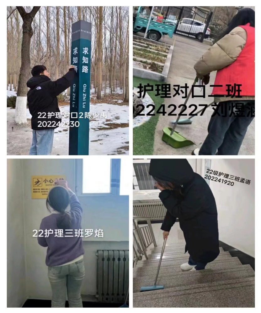 2月22~26日,护理学院150名大学生志愿者走进齐齐哈尔医学院校园,擦拭校园路牌、指示卡,清扫楼道;青年志愿者进入公园,清洁座椅、健身器材等公共设施,开展“青年志愿·美丽乡村”志愿服务,为建设文明城市、共建和谐校园,做出应有的贡献。