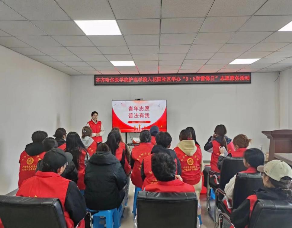 3月13日下午,25名护理学院“南丁格尔”志愿服务队队员前往花园社区开展“青年志愿·普法有我”志愿服务。汪思颖同学用通俗易懂的语言带领居民们共同学习了《民法典》,学生志愿者聆听了由黑龙江鸿盛律师事务所进行的“大学生维权”普法宣讲,真正做到了校社联动。此次活动增强了居民的法律素质,提升了学生的法律意识,营造了尊法、学法、守法、用法的氛围。