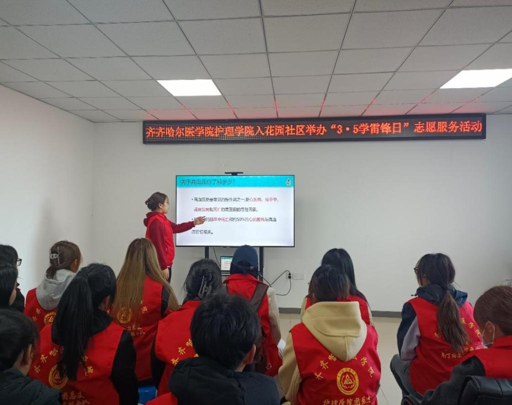3月13日,10名大学生志愿者走进花园社区,开展“青年志愿·情暖社区”志愿服务。蒋涛同学向社区居民进行“高血压”的预防科普宣讲,从高血压的定义、判断和预防三个方面进行讲解。随后,志愿者跟随社区工作人员,共同清理沿街商铺门前广告,用实际行动践行了雷锋精神。