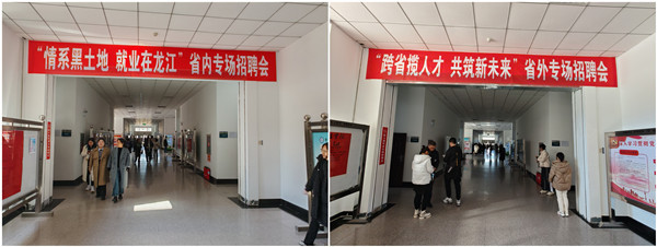 24日下午,学校各二级学院、附属医院与省内外各用人单位举办了“情系黑土地,就业在龙江”“跨省揽人才,共筑新未来”两场专场招聘会。共有37家用人单位与11个二级单位对接,分别在主楼北区8个教室进行专场宣讲,各专业毕业生与用人单位进一步深入交流,部分学生进行了现场笔试、面试,并当场签约。同时,各二级学院、附属医院与用人单位召开了“访企拓岗”洽谈会,会上,就业包保校领导与各用人单位积极搭建校企合作平台,拓宽毕业生就业渠道,深入探讨实习实训基地开辟及实习带就业等工作设想,多方全力促进2024届毕业生高质量就业。