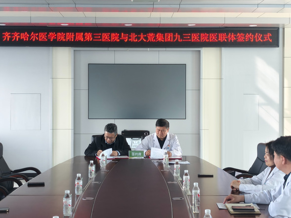 3月22日,我院副院长辜振刚一行6人与北大荒集团九三医院在医疗领域开展深度合作,成功续签订了医联体协议、新签订了房颤中心协议。这一重要合作不仅标志着两家医院在医疗服务领域的进一步融合,也为广大九三患者提供了更为优质、便捷的医疗服务。参加此次签约活动的有肿瘤分院副院长、放疗科主任佟旭,呼吸与危重症医学科三病区副主任姜云飞,神经内六科、康复一科负责人任占军,心内三科医生初而复和医疗合作办公室主任周扬。