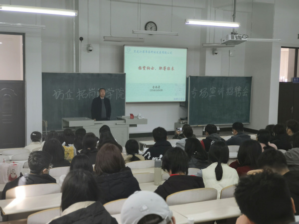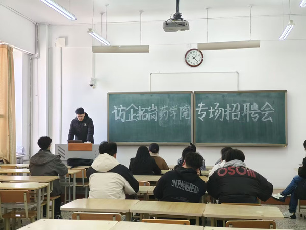 3月24日下午,“情系黑土地,就业在龙江”——黑龙江省韦恩科技发展有限公司专场招聘会于主楼北区104成功召开,公司总经理金福厚从公司简介、晋升路径、招聘岗位和福利待遇等方面进行了详细的介绍,指导毕业生做好职业规划,寻找人岗匹配的就业岗位并现场解答毕业生的问题。“跨省揽人才,共筑新未来”——上海博志研新药物技术有限公司专场面试在主楼北区106成功举办。丁远振经理协同公司各部门负责人采用线上线下相结合的方式,对简历初筛合格的30 余名同学进行了面试,对毕业生的专业技能、沟通能力、综合素质等方面进行了全面考察。经过面试有5名同学顺利签约。