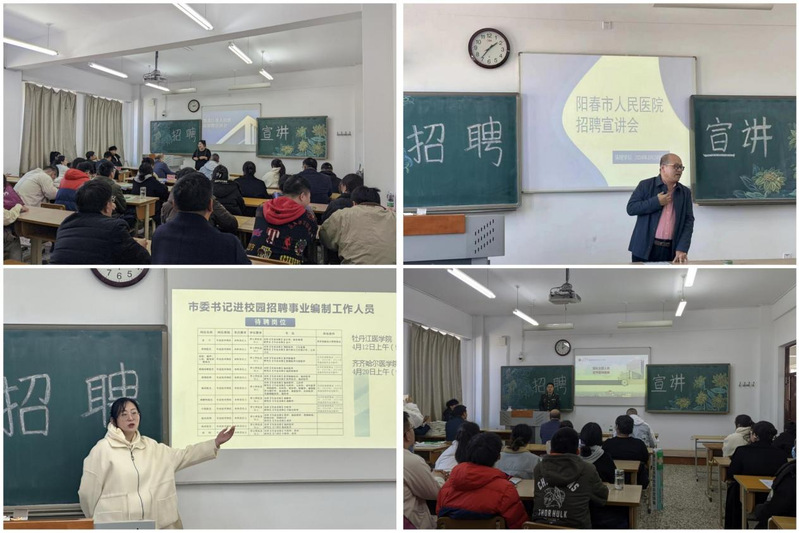 为帮助我院2024届毕业生拓宽就业渠道,增加就业机会,了解就业政策,按照《病理学院2024届毕业生就业工作实施方案》工作部署,病理学院于3月24日下午在教学主楼北区306教室召开专场招聘宣讲会。本次专场招聘宣讲会邀请了阳春市人民医院、黑河市第一人民医院、联勤保障部队第九六三医院、黑龙江省人民医院四家用人单位。会议由病理学院党总支副书记沈焕泉主持,2019级临床医学专业病理方向学生参加。