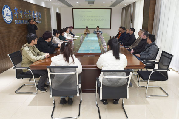 会谈交流中,刘柏人表示,学院坚守立德树人根本,注重发挥文化传承创新职能,希望以此次活动为契机,诚邀市文联和市书法家协会的名家倾情加盟学院“第二课堂”美育阵地,在全院形成传承中华优秀传统文化,弘扬书法艺术的良好氛围,引领齐医青年推动中华文明繁荣发展。市文联党组成员、副主席李亚春高度评价了学院在传承优秀传统文化方面做出的努力,为书法艺术后继有人感到欣慰。他表示,市文联,特别是书法家协会一直以来在推动书法研究、书法创作以及文艺志愿服务活动等方面做了大量工作,希望通过与学院的交流,带动更多青年投身文化传承创新。会上,市书法家协会主席崔武卿还介绍了与会书法家的专长和特色。学院书法协会的同学也介绍了活动开展、自身特点等情况。