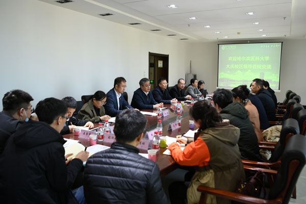 3月28日,哈尔滨医科大学大庆校区副校长宋印利一行15人就审核评估事宜来院交流。学校校长赵光、副校长于海涛出席会议并交流,高教研究与教学质量评估中心、教务处等部门相关人员参会。