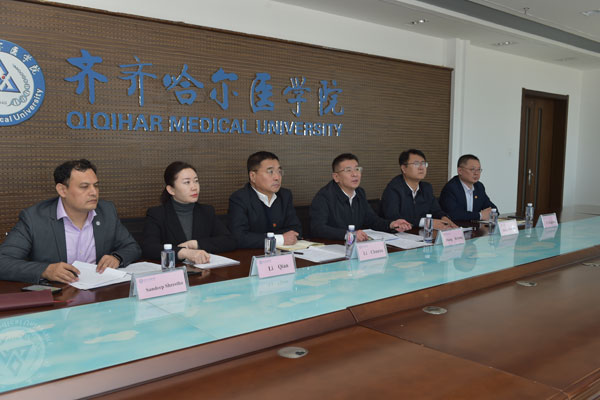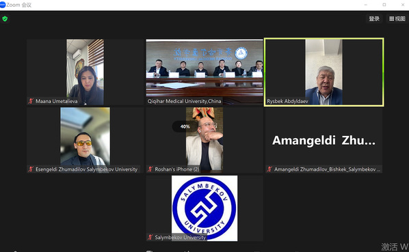 4月1日,学院与吉尔吉斯斯坦萨林别科夫大学举行线上会晤,就双方开展医疗教育合作、设立齐齐哈尔医学院临床病理诊断中心吉尔吉斯斯坦分中心等事宜进行务实磋商。学院党委副书记张可勇,医院管理处处长李春旭,病理学院院长李兴江,国际交流合作处处长王敬春、副处长李倩;吉尔吉斯斯坦萨林别科夫大学校长Amangeldi Zhumadilov、医务部主管校长Esengeldi Zhumadilov;南京医科大学教师、江苏省青年友好使者尼光明等出席会议。