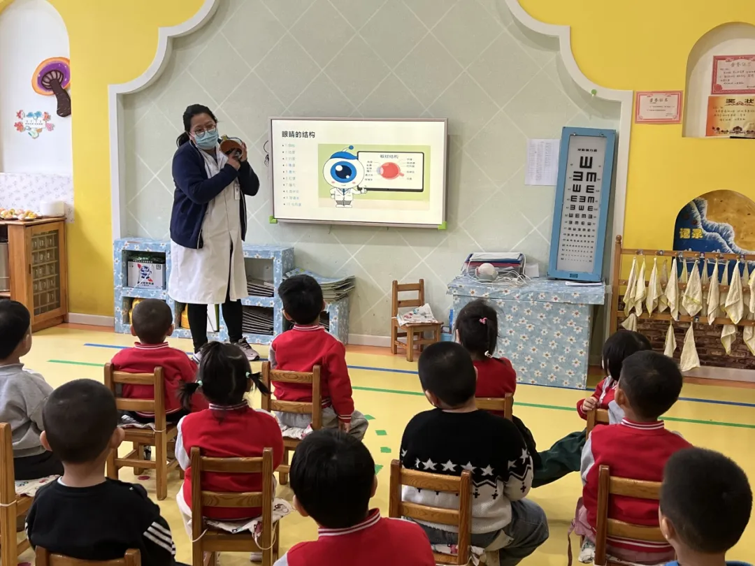3月28日上午,眼科医生、护士及工作人员携带视力表、眼底镜、裂隙灯等医疗设备,在喜洋洋幼儿园开展科普、咨询、义诊活动。眼科医生通过讲故事、看模型等方式为小朋友们科普爱眼护眼知识,让小朋友们都知道了少看电子产品、看书写字姿势端正、营养均衡不挑食、不在昏暗和强烈的环境内看书等常识,还知道眼睛看不清要及时告知老师和家长。医护人员还为小朋友进行视力检查,如遇视力下降、需要进一步验光检查的小朋友,现场填写视力检查通知单,嘱其后续来到医院检查。