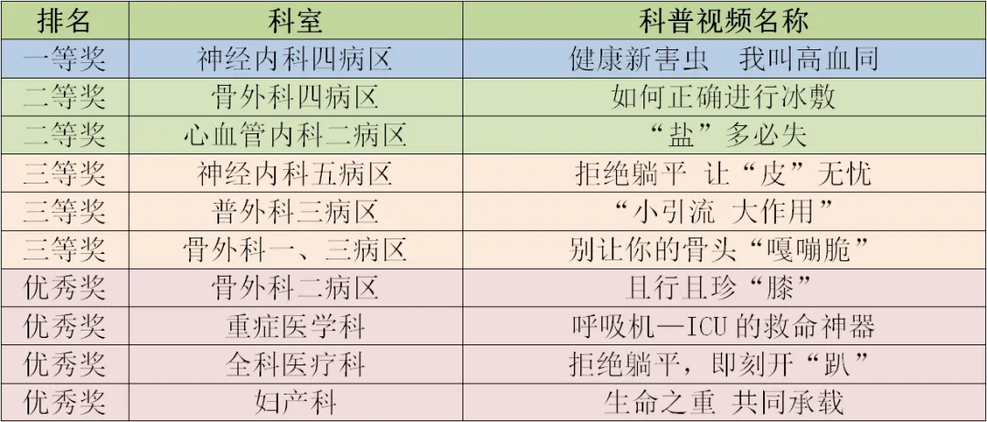通过本次科普微视频大赛,提高了护理人员科普健康宣教能力,在今后的护理科普工作中,我院护理团队将不断创新护理科普形式,持续改进科普健康教育工作质量,为红岸百姓提供更加科学专业、优质、亲情阳光的护理服务。