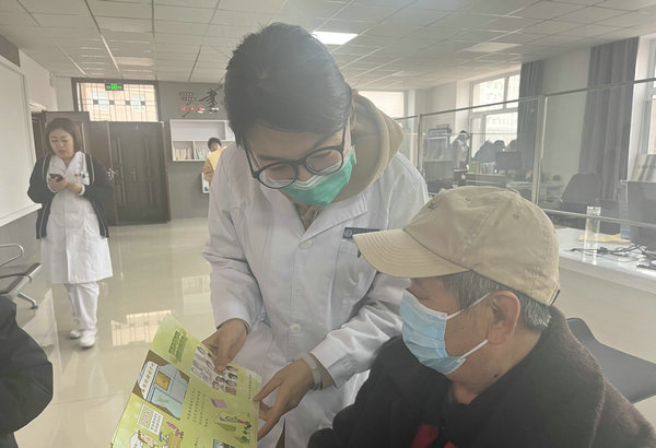保健科副科长刘文瑶为居民讲解健康保健相关知识