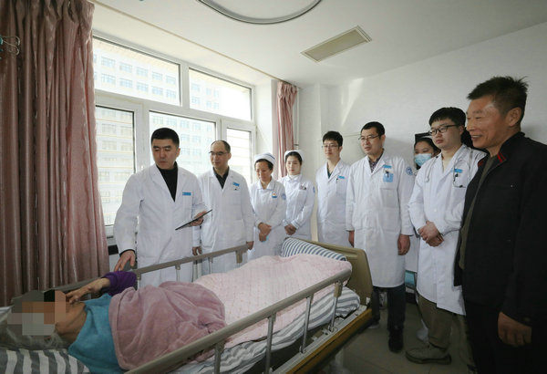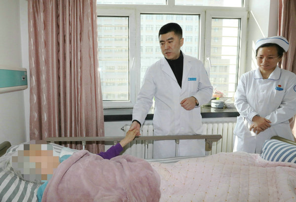 患者拉着王峰主任的手表达感激之情