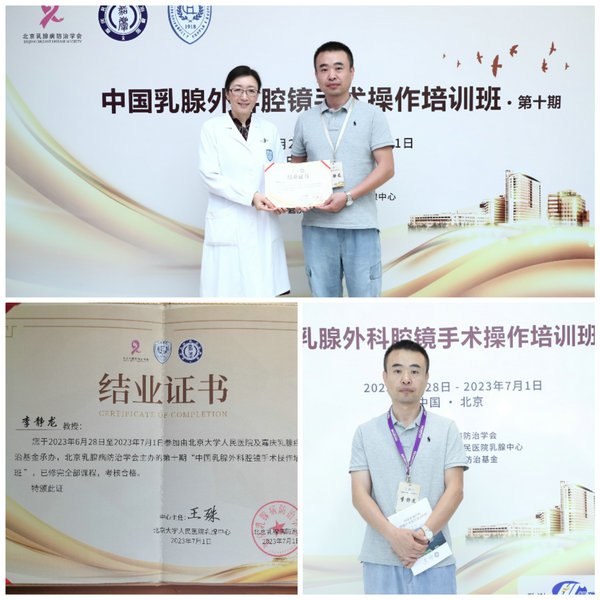 李静龙主任医师赴北京大学人民医院“中国乳腺外科腔镜手术操作培训班”学习乳腺腔镜手术