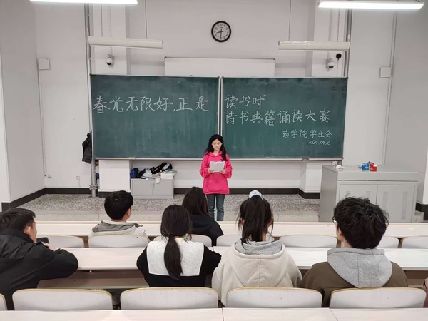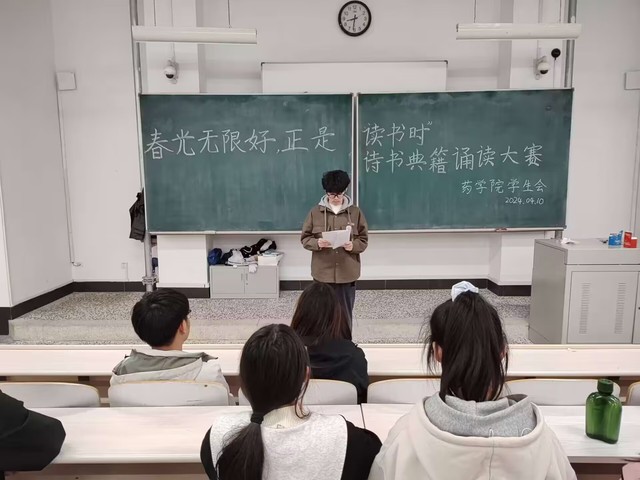 为在学生中营造良好的读书氛围,培养热爱阅读的习惯,传承中华民族优秀语言文化,4月14日,药学院组织开展“春光无限好,正是读书时”诗书典籍诵读大赛。