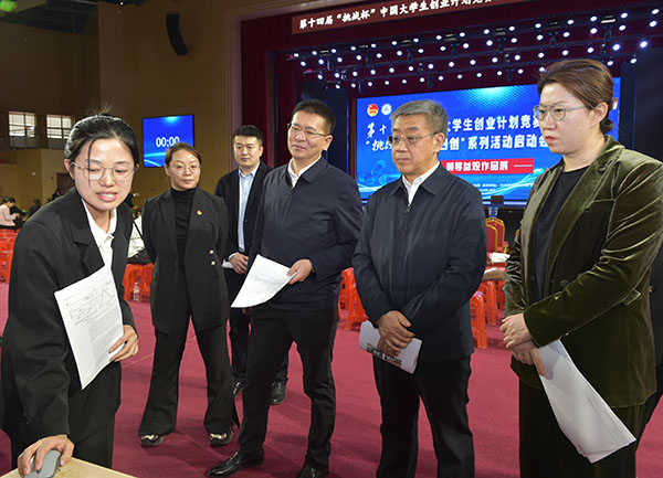 “四创”系列活动启动会期间,与会领导嘉宾走到优秀作品展区,与同学们、指导教师亲切交流,详细了解大家的研究过程和进展情况。据悉,本届“挑战杯”自去年11月启动立项至今历经5个月,申报作品167项,参赛指导教师317人次,参与学生1215人次,创下了学院“挑战杯”参与人数的历史新高。