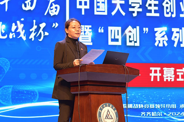 团市委书记孙坤,学院院长赵光、党委副书记张可勇出席大会。哈尔滨工程大学、哈尔滨医科大学、齐齐哈尔市优秀企业家和学院创新创业教师等评审专家;人事处、科研处、研究生院负责同志;各二级学院、附属医院党政负责人、团委(总支)书记;参赛项目指导教师和项目成员代表500余人参加活动。开幕式由学院团委书记刘柏人主持。