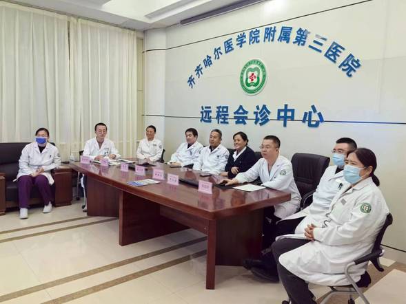 “左肺下叶鳞癌术后,根据其病情推荐先行胸部放疗同步化疗,之后序贯化疗”,“右肾上极占位性质不明,肾脏肿瘤转移相对少见,考虑原发性病变,建议进一步明确病理”。几天前,在齐医学院附属三院门诊楼4楼远程会诊中心,来自泌尿外科、胸外科、肿瘤内科、影像科、放疗科、介入科的专家们,经过对病情的全方位分析、研判和讨论,给一位肺癌术后合并肾占位的患者给出了综合治疗建议。
