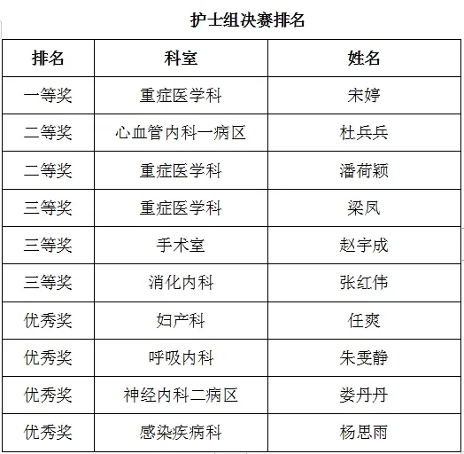 决赛共分为理论考核和技能操作两部分进行。其中,理论采取317护无纸化考试;技能操作部分,护师、主管护师组考核项目为经鼻/口吸痰术、胃肠减压技术,护士组考核项目为心肺复苏术和密闭式静脉输液。