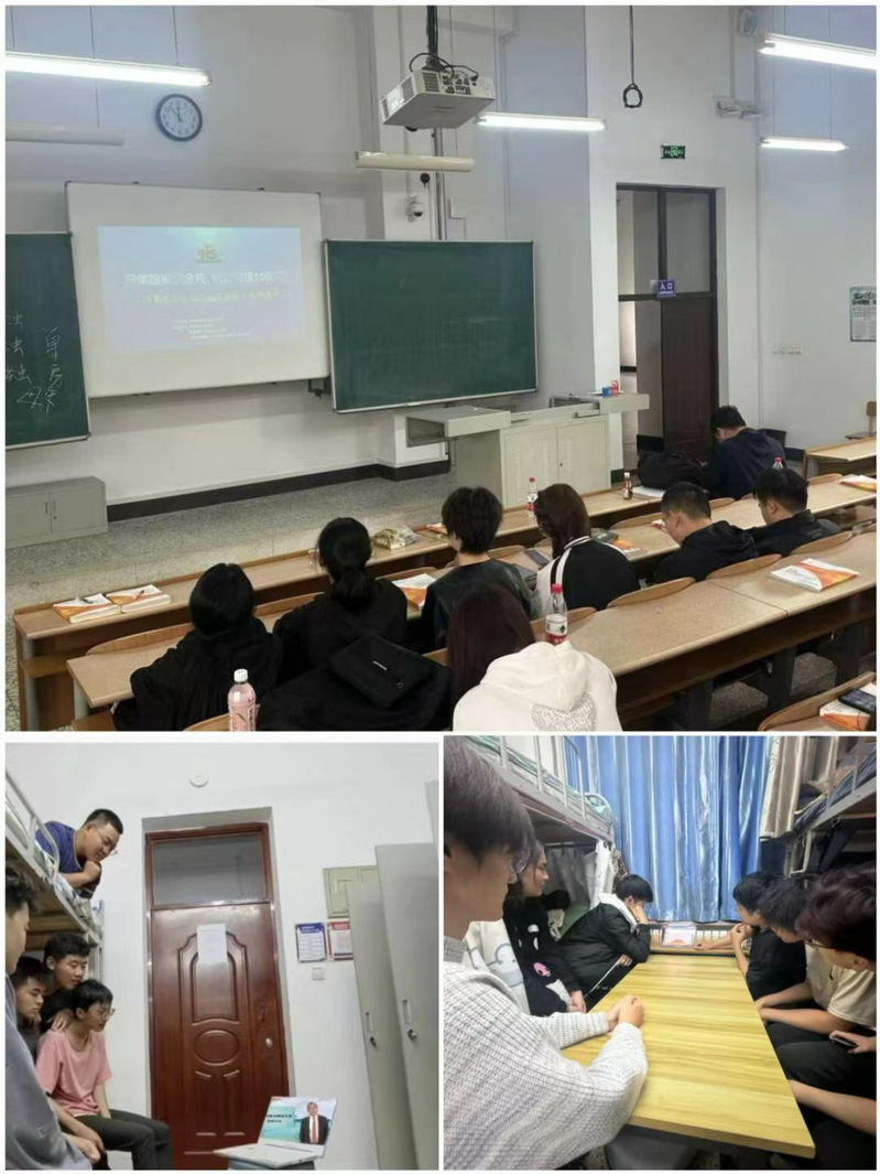 4月14至15日,组织各班级采取线下的方式,分别在寝室和教室集中观看“高校国家安全视频公开课”。