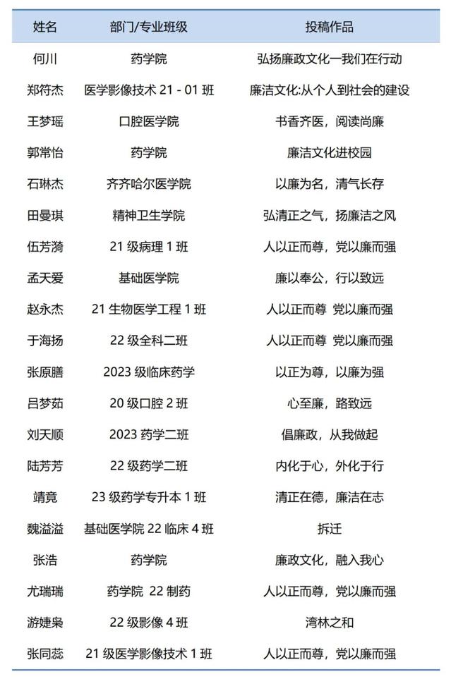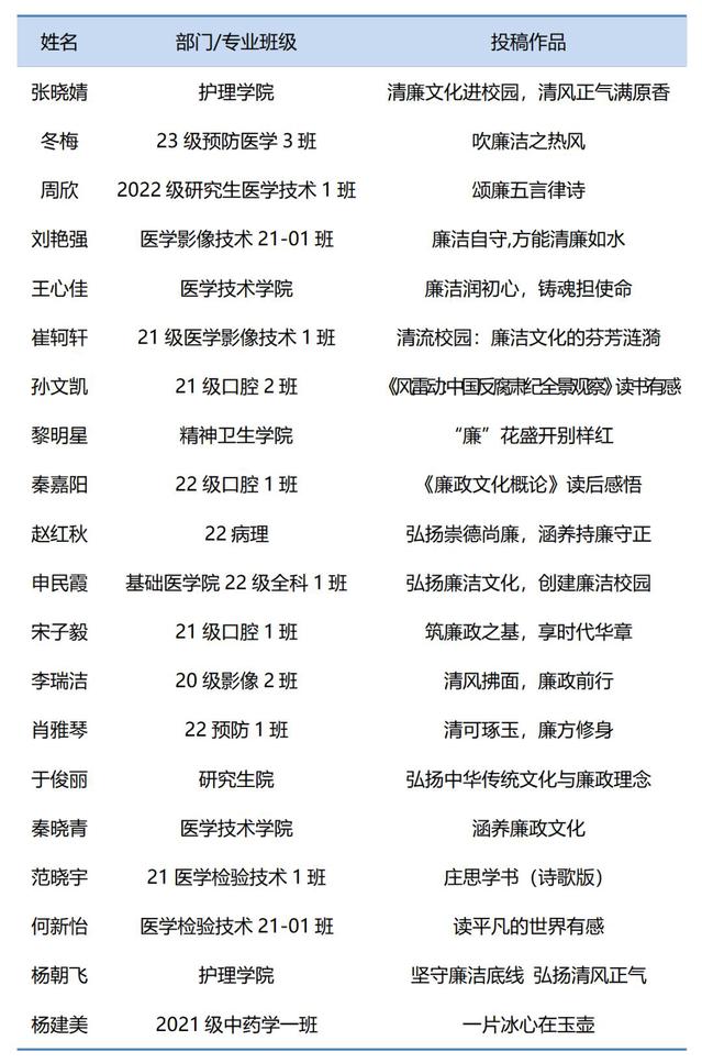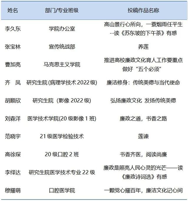 4月23日,廉政文化读书征文活动颁奖仪式及读者座谈会在图书馆举行,廉政文化读书征文活动是“书香齐医 阅读尚廉”廉洁文化建设主题活动的组成部分之一,在学院纪委倡导下,图书馆结合廉政主题图书推荐、读书交流等活动,邀请全院师生读者围绕弘扬中华民族优秀文化、传统道德与社会主义核心价值观,突出廉政文化主题撰写征文,得到我校师生积极响应和大力支持,李久东等10名作者荣获一等奖;张晓婧等20名作者荣获二等奖;何川等20名作者荣获三等奖(获奖名单见附图)。