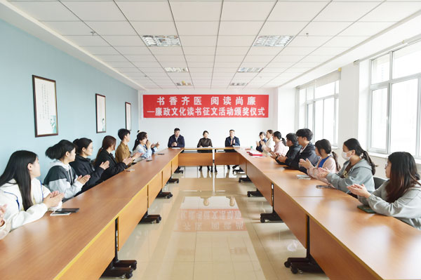 本次颁奖仪式邀请学院纪委书记李龙珠、学院副院长于海涛为廉政文化读书征文活动获奖作者代表颁奖并发表阅读寄语,鼓励在座师生保持对阅读的热爱和追求,从阅读中不断汲取知识养分,共同推动校园廉洁文化的繁荣和发展。学院宣传统战部部长张宝林与学生交流并发表阅读感想,本次活动在热烈的氛围中圆满结束。图书馆将以廉政文化阅读活动为契机,在学院纪委的指导下,进一步贯彻落实校园廉洁文化建设,采取线上线下相结合的方式,向全院师生推荐廉政文化主题图书,营造“爱读书、读好书、善读书”的书香校园氛围,为学院高质量内涵式的发展提供文献资源与服务保障。