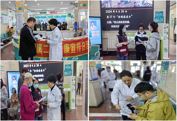 4月26日是我国第17个“全国疟疾日”。本年度全国疟疾日宣传主题为“防止疟疾再传播,持续巩固消除成果”。齐医附属二院积极响应号召,建华区疾控中心张咏梅主任等一行五人同我院保健科共同开展此次活动。