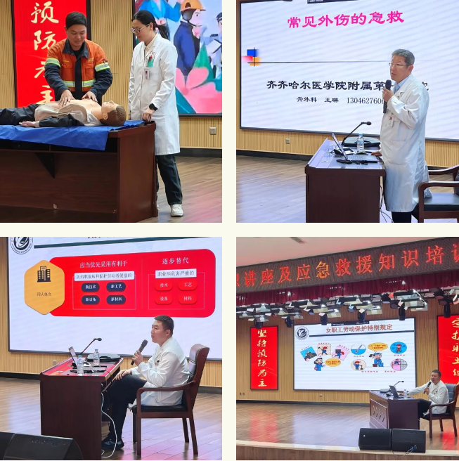 4月28日,我院健康体检中心副主任解诗远、骨外科三病区主任王琳、急诊科医生马贺分别以《职业健康讲座》《常见创伤的处置》《心肺复苏》为题目,为黑龙江省紫金铜业有限公司职工进行现场培训。讲座现场气氛热烈,紫金铜业的安环人员纷纷表示,此次讲座的医学科普知识正是日常工作或者生活中常用的,关乎个人的自身权益及生命健康,确实受益匪浅。