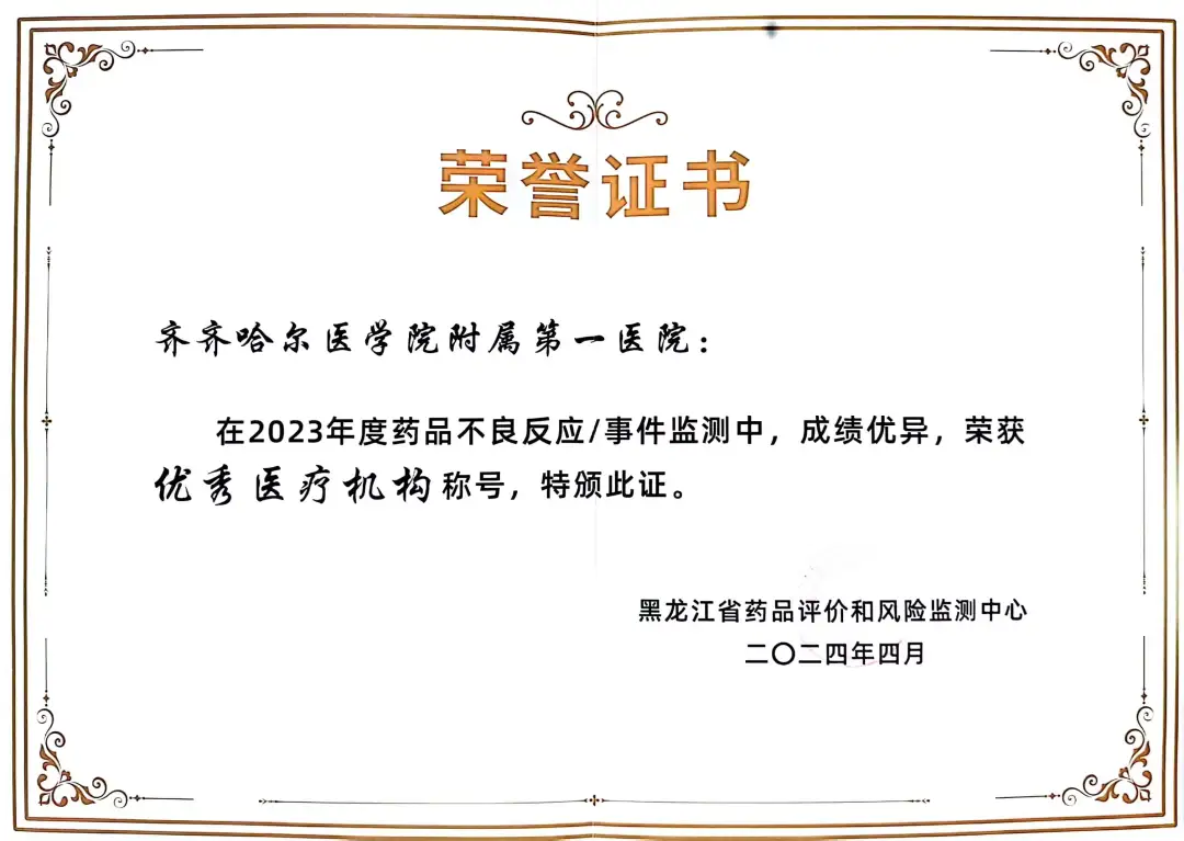 4月28日,齐齐哈尔市药品检验中心召开药械化不良反应监测工作交流会,对2023年获得全省不良反应/事件监测工作先进单位给予表彰。齐医附属一院被黑龙江省药品评价和风险监测中心评为“优秀医疗机构”称号。