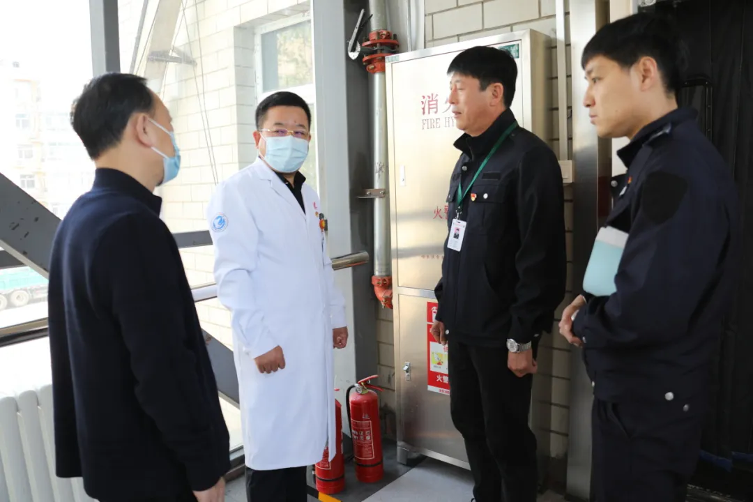 查房中,院长、党委副书记李忠原与医务人员深入交流,对消防器材摆放及使用、安全巡查记录薄落实情况进行调研。他告诫大家始终绷紧安全生产这根“弦”,严格落实安全生产责任人制度,持续加强安全生产管理工作;以院为家,改善诊疗流程,提高服务质量,美化整洁诊疗环境;妥善安排好节假日期间值班值守、安全、保卫、后勤等工作,为患者提供最优质的服务,全力保障“五一”期间医院平稳安全运行,满足广大人民群众的就医需求。