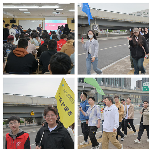当天早上,近200名学生齐聚临床技能中心多媒体教室,拉开健步走启动仪式序幕。科研教学部副主任张宁以“锻炼意志、磨炼体质、团结向上”为主题,阐述了活动意义,希望同学们让青春活力绽放希望之光,并为各班授予班旗。随着一声发号令响,同学们踏上征程。