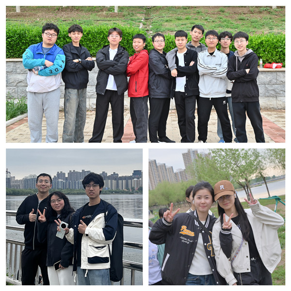潮白河带状公园燕郊段,北至顺义界,南至通燕高速,总长度约11.5公里,总面积为56.4公顷。潮白河生态廊道是京冀跨域打造国家级森林公园之潮白河森林公园的组成部分,栽植有乔灌木、地被及各类花卉,建设有木栈道及亲水平台4089平方米,各类公用设备276套,背景音乐系统贯穿各大节点,将河道生态系统和林地生态系统相融合,是集市民休闲、健身、游憩、文化于一体的大型公共绿带。同学们纷纷驻足合影留念。