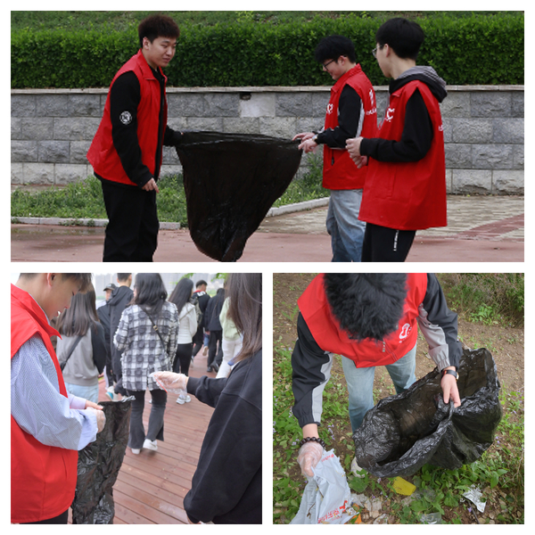 从燕达医院门诊停车场徒步至潮白河燕郊带状公园,全程7.5公里。行程中,学生们体现了强烈的集体荣誉感,他们相互搀扶、相互鼓励,共同面对天气带来的不适健步前行。出发前,同学们进行了充分的“武装”分组,配置了垃圾袋和手套,身穿红色马甲的党员和积极分子带头当起了环保卫士,沿途捡拾发现的垃圾。