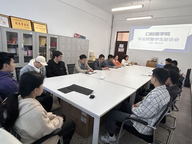 为进一步加强学风建设,落实学生学业预警机制,做好学业困难学生的教育管理和精准帮扶,口腔医学院于4月28日下午,在主楼南区330召开了学业预警学生座谈会。学院党总支书记姜鹏、副书记孙剑出席会议,学工办主任杨超、各年级辅导员和学业预警学生参加了本次会议。会议由分管学业预警工作辅导员郝晓丽主持。