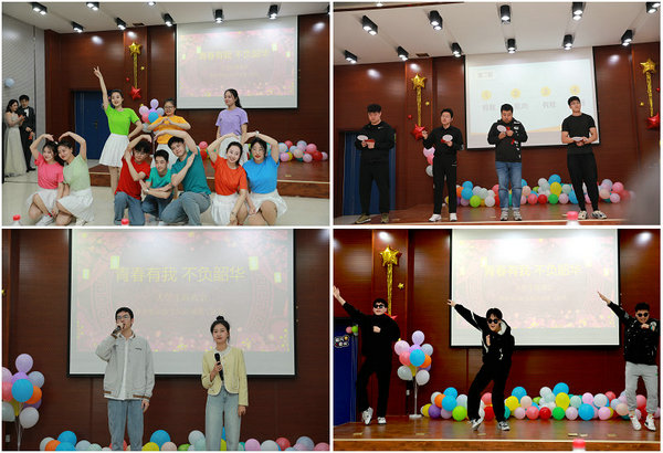 联欢会在青春洋溢的气氛中拉开序幕,一曲开场舞瞬间燃起全场气氛,现场感受到了新年活力与激情,学生们演唱的《水星记》、《红玫瑰》、《可可托海的牧羊人》、《AI》、《易燃易爆炸》等歌曲让观众置身于音乐的海洋。学生自编自导的舞蹈《青山烟雨客》让观众享受了一场江南国风的视觉盛宴。街舞《Let's get lit》《科目三》活力四射,魔术《戏法》表演生动引发全场激烈的掌声,四人创意节目《谁是卧底》与单人搞笑歌舞《小浣熊传奇》内容诙谐,以强大的感染力和喜剧效果,将整场联欢会推向了高潮。令人陶醉其中朗诵《岳阳楼记》引起莘莘学子的深刻共鸣,现场掌声连连,精彩不断,欢呼声响遍全场。整场联欢会在郭阳曦同学等带领全体观众一起合唱《New boy》中圆满落幕。