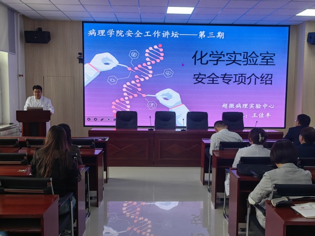 为了深化平安校园建设,增强病理学院师生的安全意识和事故防范处置能力,有效预防实验室安全事故发生,5月8日下午在形态楼418会议室,由李兴江院长主持召开了第三期安全工作讲坛,我院全体教职工及研究生参加了此项活动。