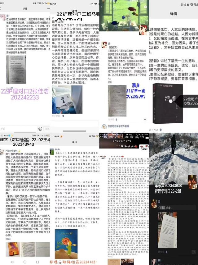 同学们通过微博、朋友圈等形式分享阅读书目、推荐理由和读书心得,结合所想、所感、所悟,阐述书籍给人带来的力量。