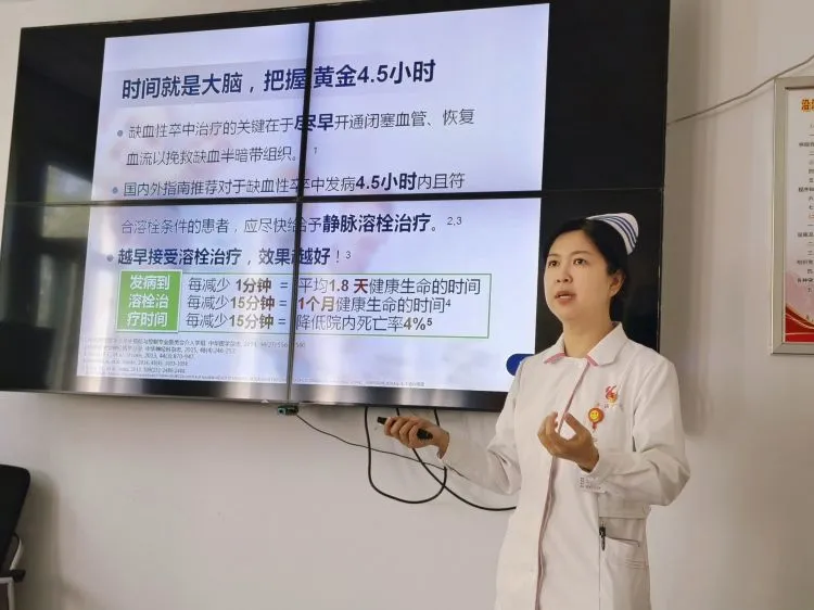 全国人大代表、护理部副主任、神经内科四病区于洋护士长以通俗易懂的语言向大家进行了《远离卒中,从这里开始》的授课,为社区居民讲解了脑血管疾病的防治知识,并介绍了齐齐哈尔医学院附属第一医院神经内科静脉溶栓、动脉介入治疗技术,让大家了解脑卒中的危害及如何预防,提高居民对脑卒中的正确认识和健康意识。