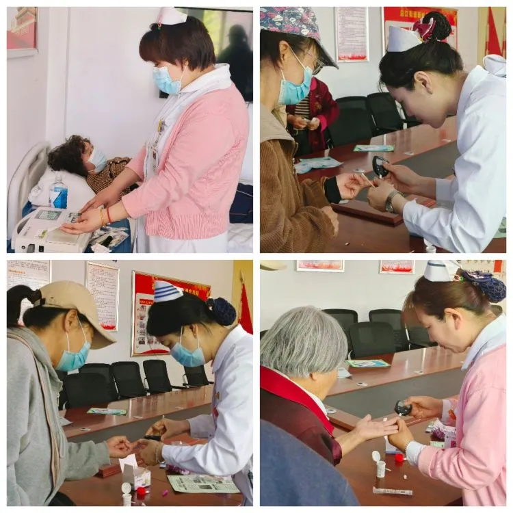 讲座结束后,张娜、胡长玲两位护士免费为现场居民做心电,测量血糖、血压,提供相关健康生活指导同时,护理宣传小组还准备了疾病宣传手册对居民进行一对一指导。