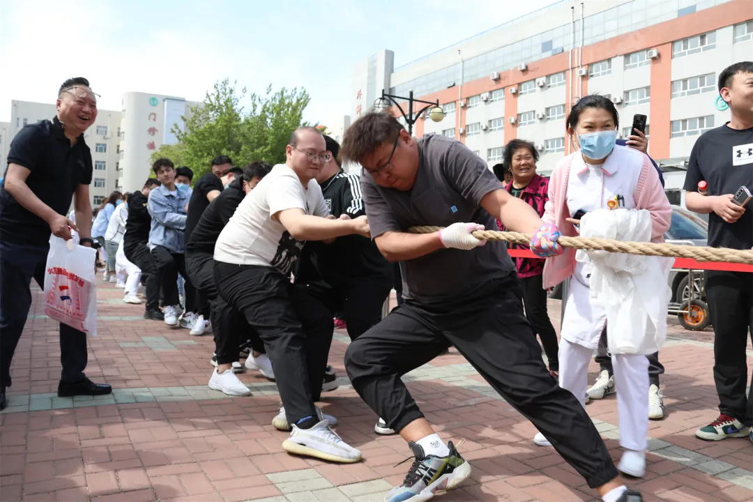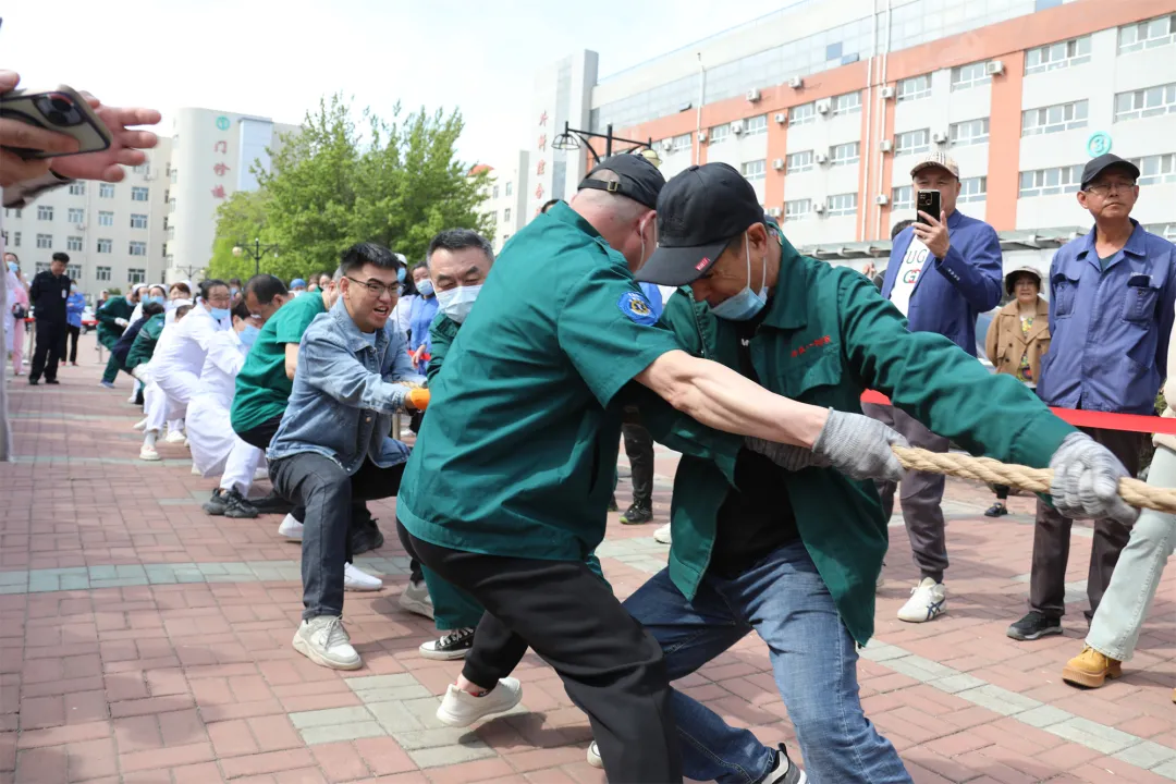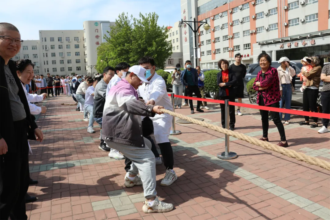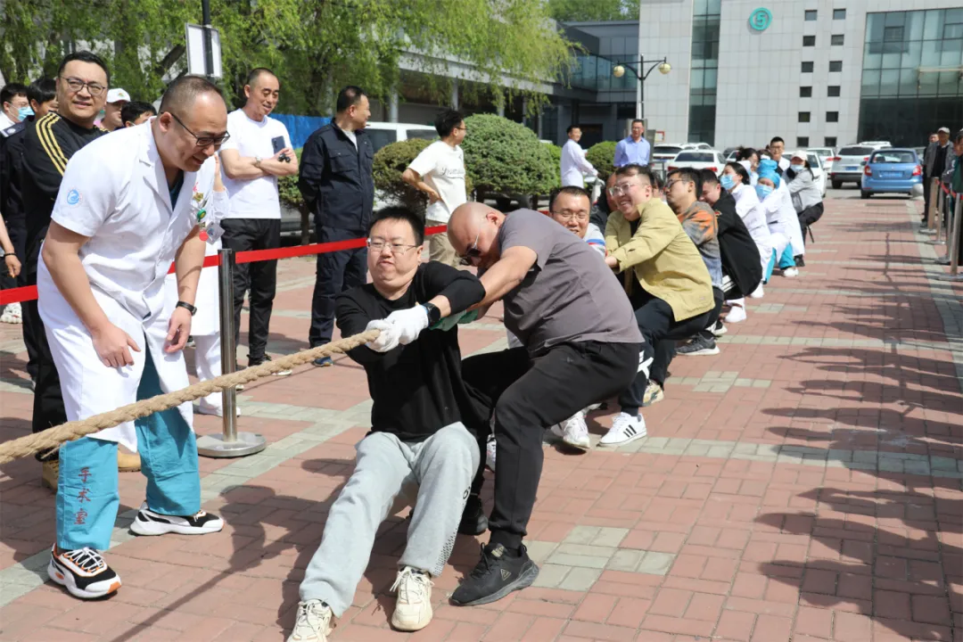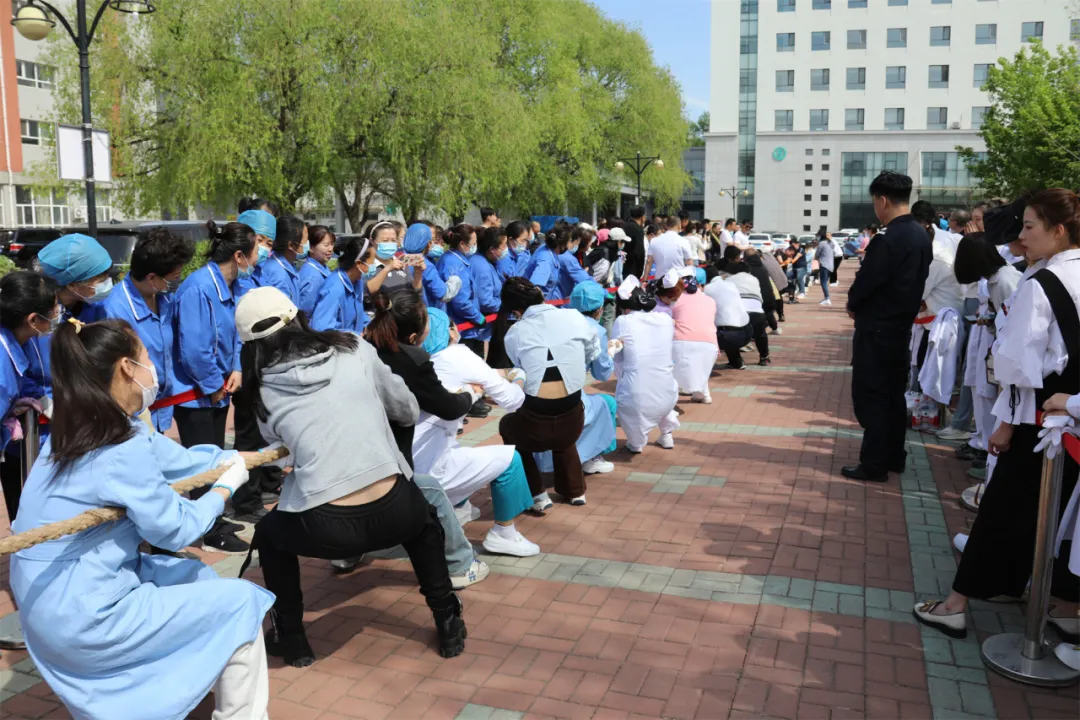 5月9日下午,齐医附属一院举办“凝心聚力 乐享健康”第十二届职工拔河比赛。此次活动以分会为单位,11支队伍231名职工参与比赛,医院副院长艾立辉到场为参赛队员加油助威。活动由工会主席陈珊珊主持。