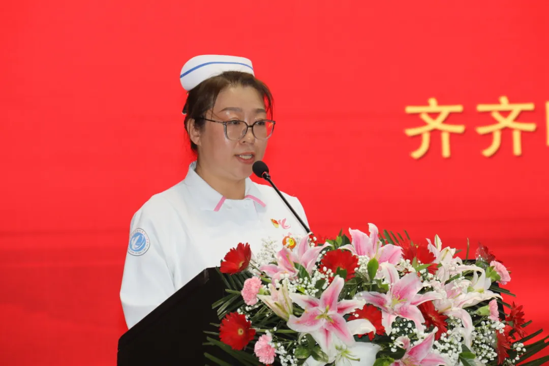 优秀护理团队代表马丽雅、优秀护士长代表商敏、优秀护士代表王晓彤上台发言,她们分别结合临床工作实际,作护理工作感悟和收获分享,诠释了自己对护理工作的热爱,充分展现了我院护理队伍团结奋进、无私奉献、勇于担当的精神风貌。