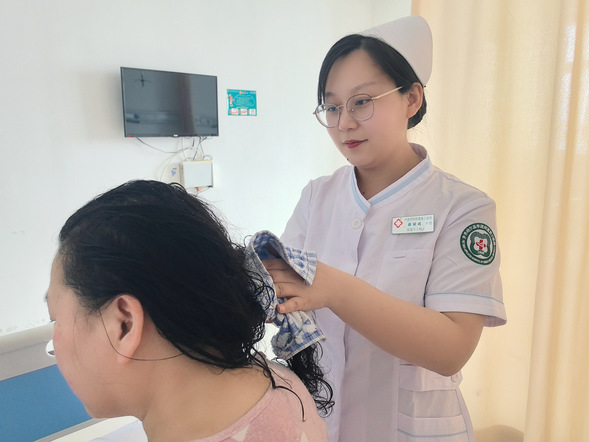 风湿免疫科护士薛丽娟为患者洗头