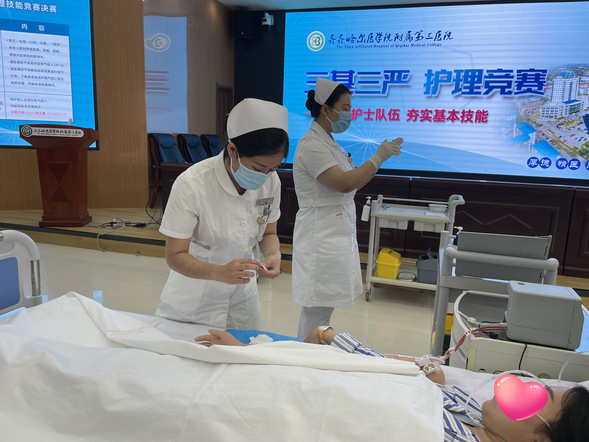 “医院十分注重护理人员的培养,通过举办各种培训、学术交流和技能竞赛等活动,不断地提高护理人员的业务能力和综合素质。”齐医附属三院护理部主任李丽告诉记者,医院每年都组织“三基三严”护理培训及竞赛,针对不同层级的护理人员开展护理技能培训,强化基本技能,并选拔优秀选手参加省市级竞赛,分别荣获黑龙江省红十字应急救护大赛第二届创伤救护两项一等奖、团体二等奖,第三届个人创伤包扎一等奖、团体二等奖,中华护理学会第三届动脉血气分析标本采集技术比赛黑龙江省赛区三等奖,黑龙江省护理门诊安全采血优秀奖。