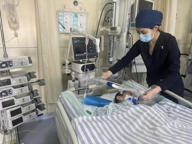 赵腾为患者吸痰后整理管路