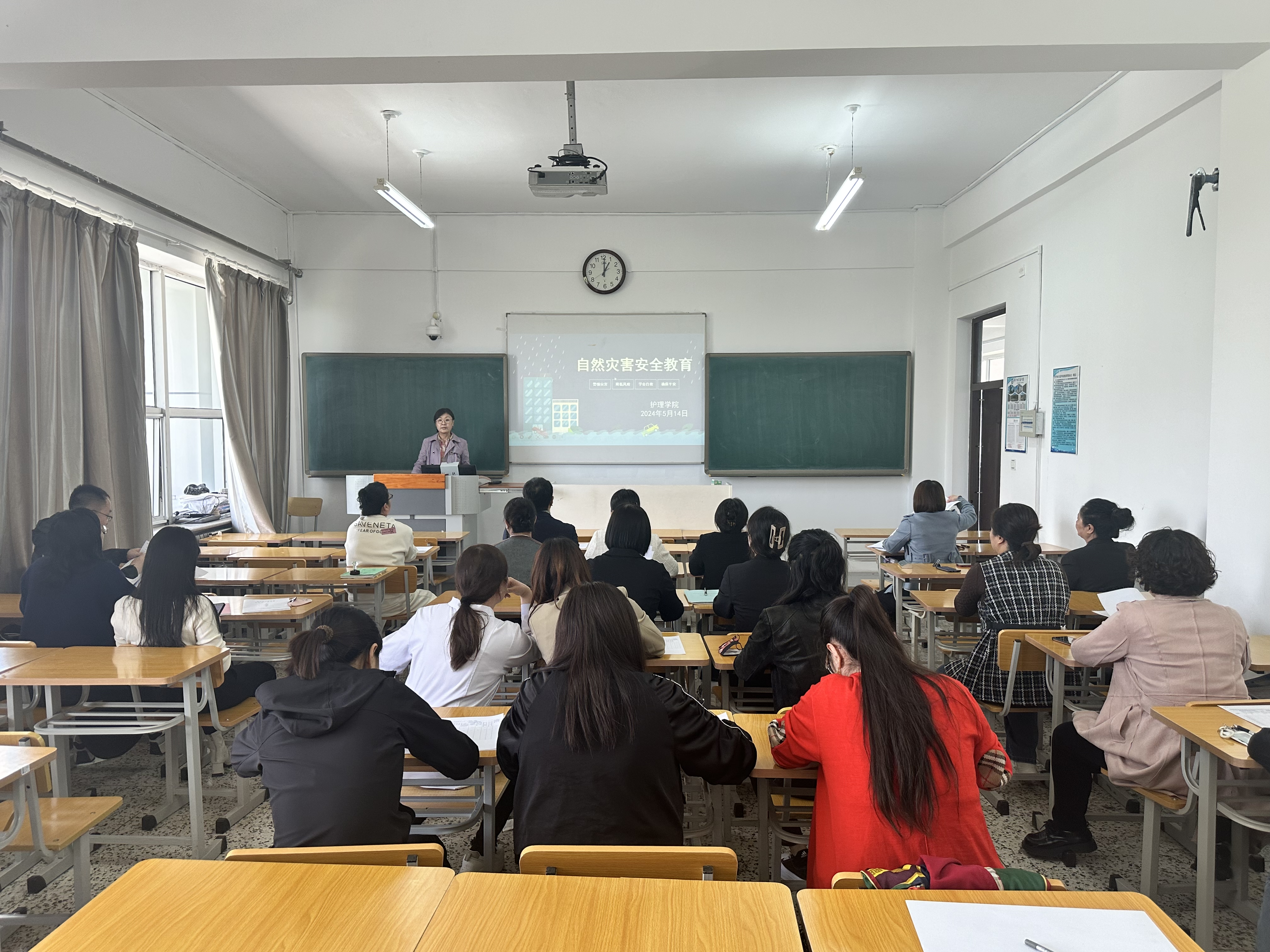 活动一:强化宣传引领,树牢安全意识。5月14日,护理学院在主楼北区503教室开展“人人讲安全、个个会应急——着力提升基层防灾避险能力”宣传教育活动。活动首先组织全体教师观看了防灾减灾自救知识科普视频,视频内容包括自然灾害的应对措施和自救技巧,使大家直观感受到了灾害的破坏性和应对灾害的紧迫性。随后开展自然灾害安全教育讲座,李桂玲副院长围绕地震、火灾、洪水、台风等常见灾害的成因、预警信号、防范措施和应对方法等内容进行了深入浅出地讲解,使师生对防灾减灾知识有了更加全面的认识。