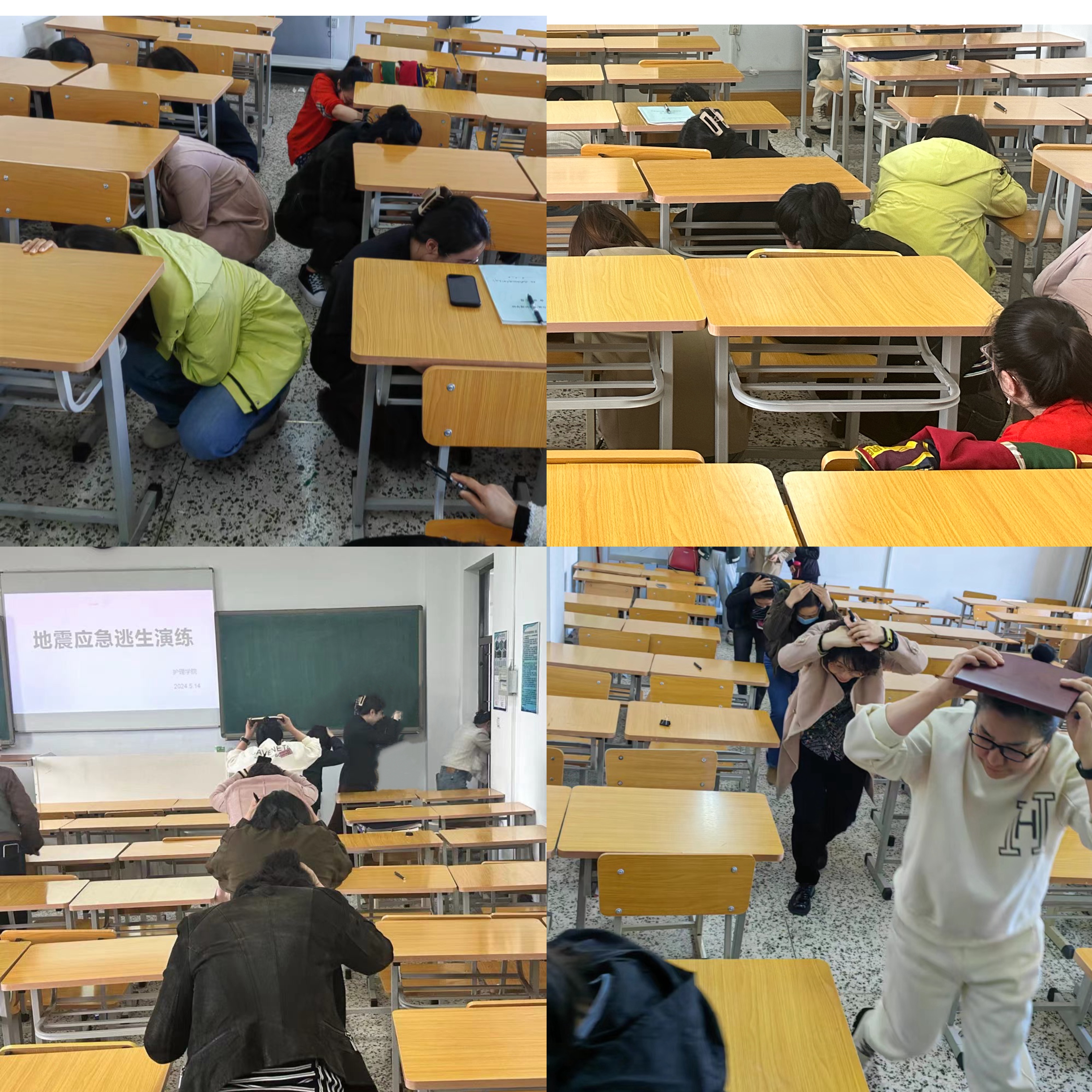 活动二:开展应急演练,提升避险能力。为进一步增强师生防震减灾意识,提高师生在地震等突发事件中的应急避险和自救互救能力,5月14日,护理学院在主楼北区503教室开展地震应急逃生演练活动。随着警报声的响起,大家迅速抱头、闭眼、蹲下,就近躲避在课桌下或墙角边等安全区域,尽可能用书本等物品保护头部,随后按照预定的方案,迅速而有序地撤离教室。