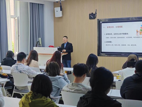 5月18日下午,邀请公共卫生学院副教授、齐齐哈尔市健康教育协会专家李刚给学生做了 “奶豆添营养,少油更健康”主题讲座。讲座中,李刚老师结合丰富的专业知识和实践经验,深入浅出地讲解了奶类和豆类食品的营养价值,以及如何在日常饮食中合理搭配,减少油脂摄入,保持健康体魄。同时,李刚老师还通过生动的案例和趣味的互动环节,激发了学生们对营养知识的兴趣和热情。