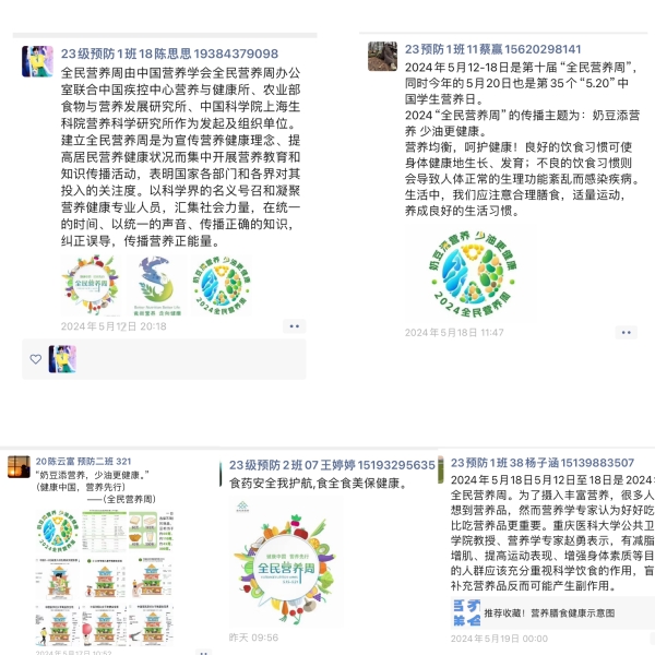 5月12-20日,公共卫生学院通过公众号进行了5.20全民营养周活动主题“奶豆添营养,少油更健康”相关知识的线上宣传互动活动。学生积极踊跃参与,营造了良好的营养知识学习氛围。