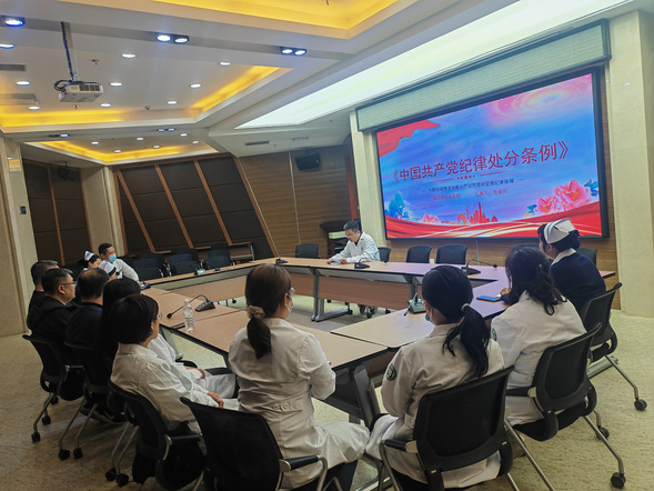 为深入学习贯彻习近平总书记关于党纪学习教育的重要讲话和重要指示批示精神,按照医院党委工作部署,近日,联合第五党支部全体党员在深入学习《中国共产党纪律处分条例》(以下简称《条例》)的基础上,党支部书记苍春阳在住院综合楼三楼第四会议室开展“新修订的《中国共产党纪律处分条例》解读”专题党课。此次活动旨在加强党员的纪律教育,提升党性修养,推动全面从严治党向纵深发展。党支部全体党员参加学习。