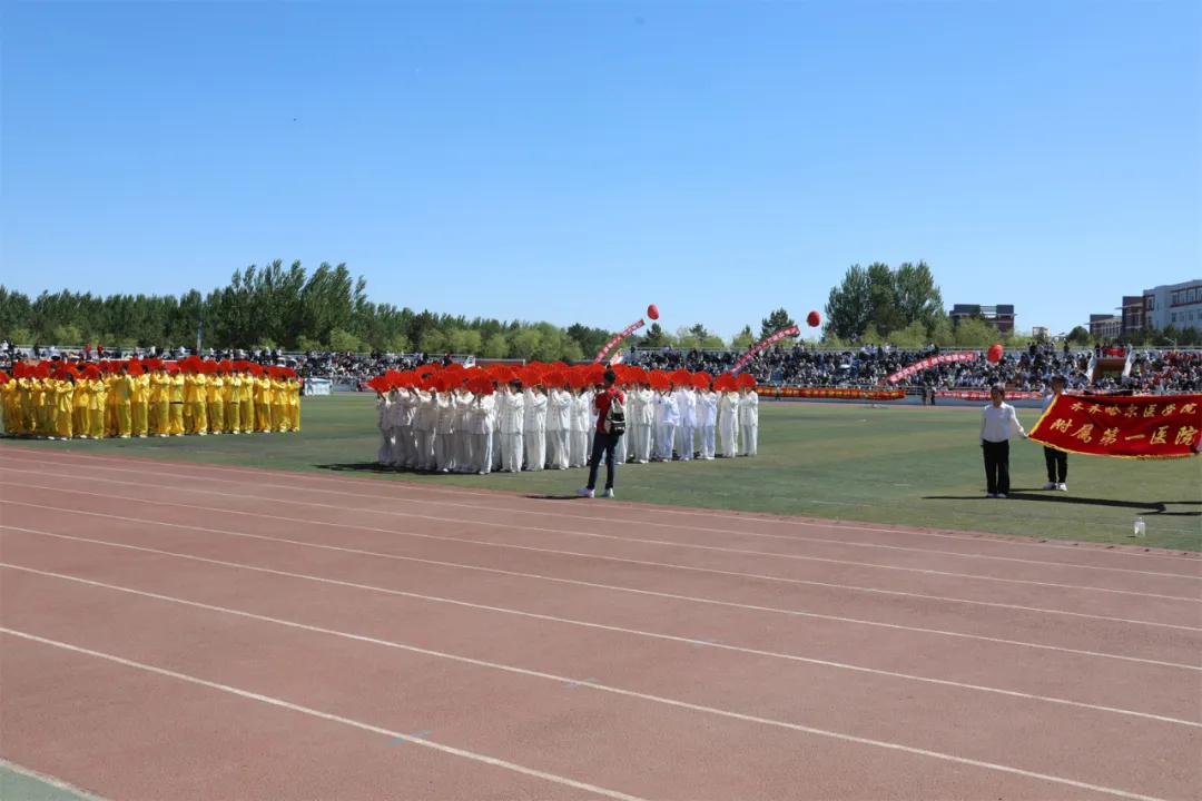 繁花争妍,春潮奔涌,青春正当时。5月23日,齐齐哈尔医学院第三十三届运动会如期开幕。开幕式上,我院领导班子率领专家方阵、护士方阵、学生方阵以及身着达斡尔民族服装的梅里斯分院职工400余人,迈着整齐的步伐,喊着响亮的口号,走过主席台前,接受主席台领导检阅。